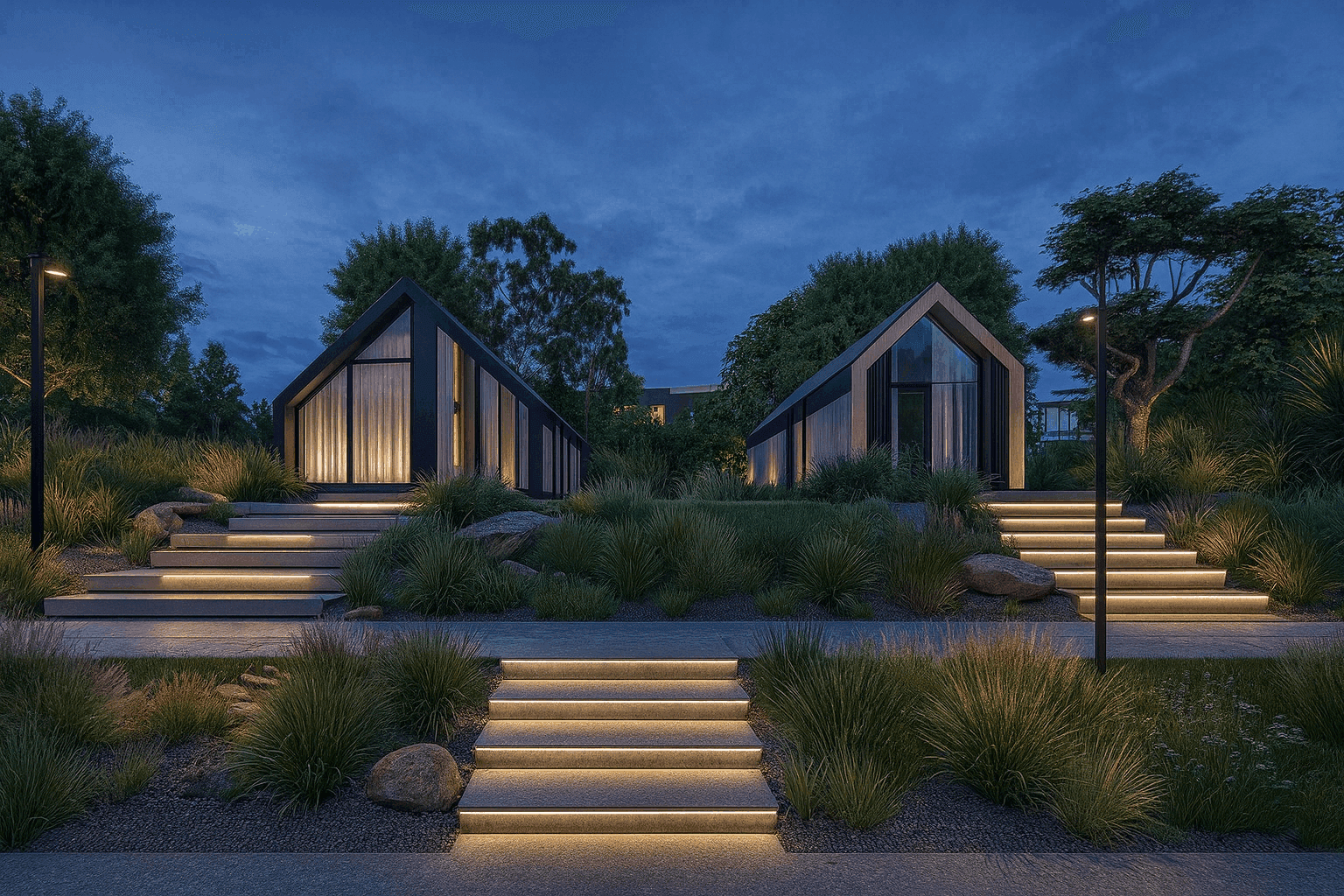 Будинки спроєктовані за каркасною технологією з використанням утеплювача HempireMix на основі конопляних волокон. Таке рішення забезпечує високі теплоізоляційні властивості, паропроникність і стабільний мікроклімат, зменшуючи енергоспоживання та вплив на довкілля.