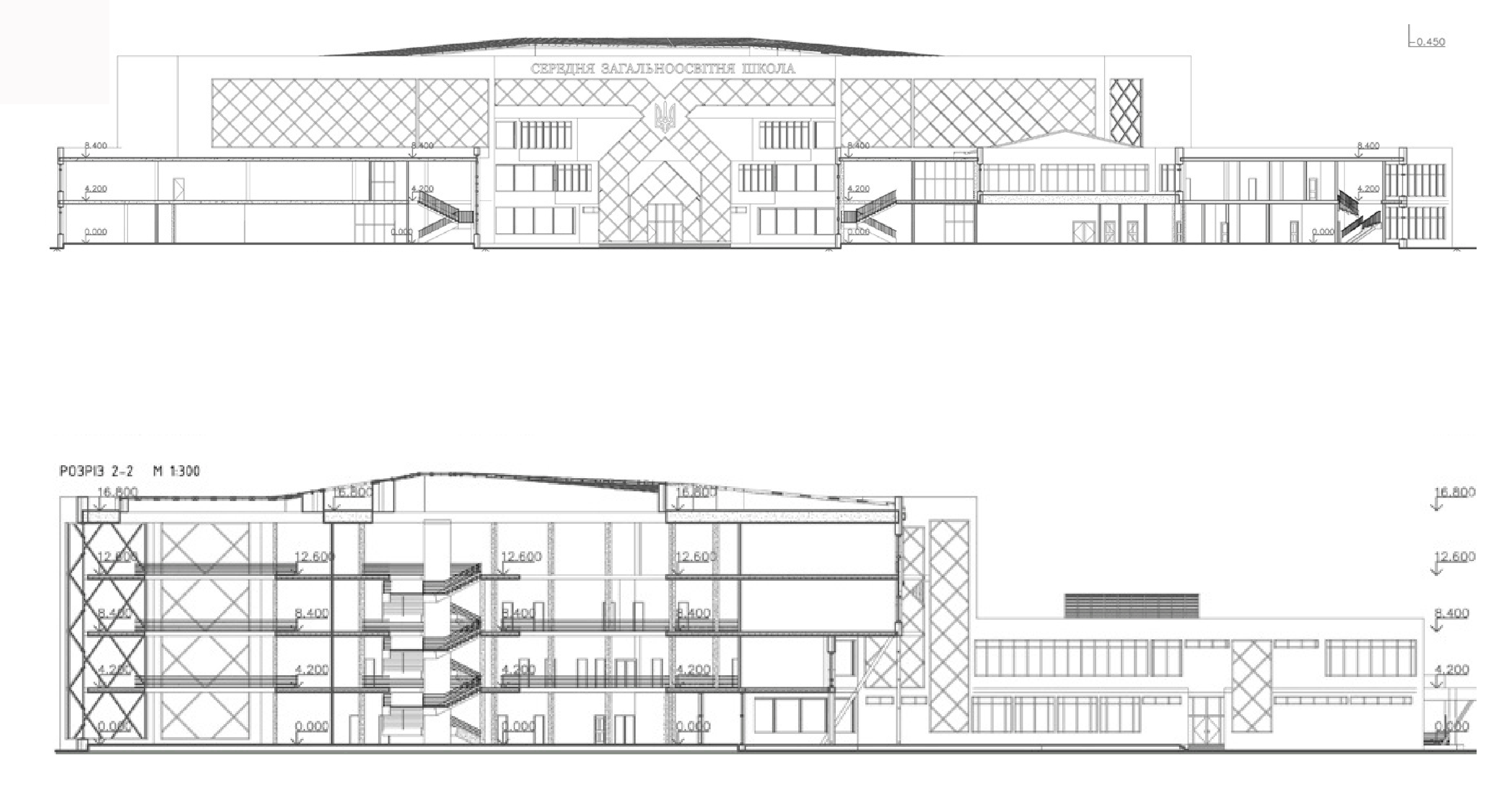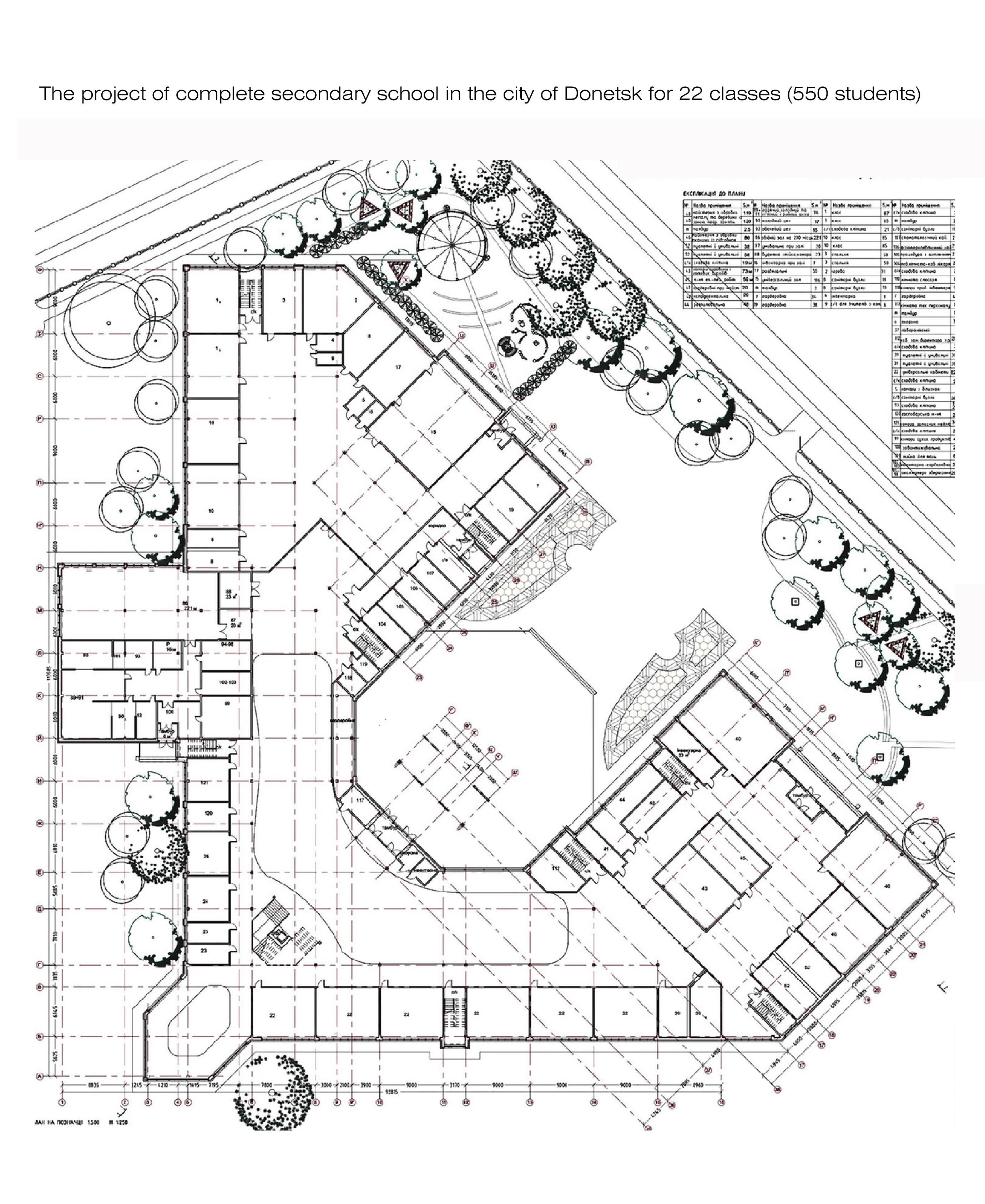 Середня школа на 550 учнів — проєкт, спрямований на відновлення та підвищення якості освітнього середовища. Архітектурна концепція побудована з урахуванням правильної орієнтації будівлі, що забезпечує оптимальне природне освітлення навчальних просторів.